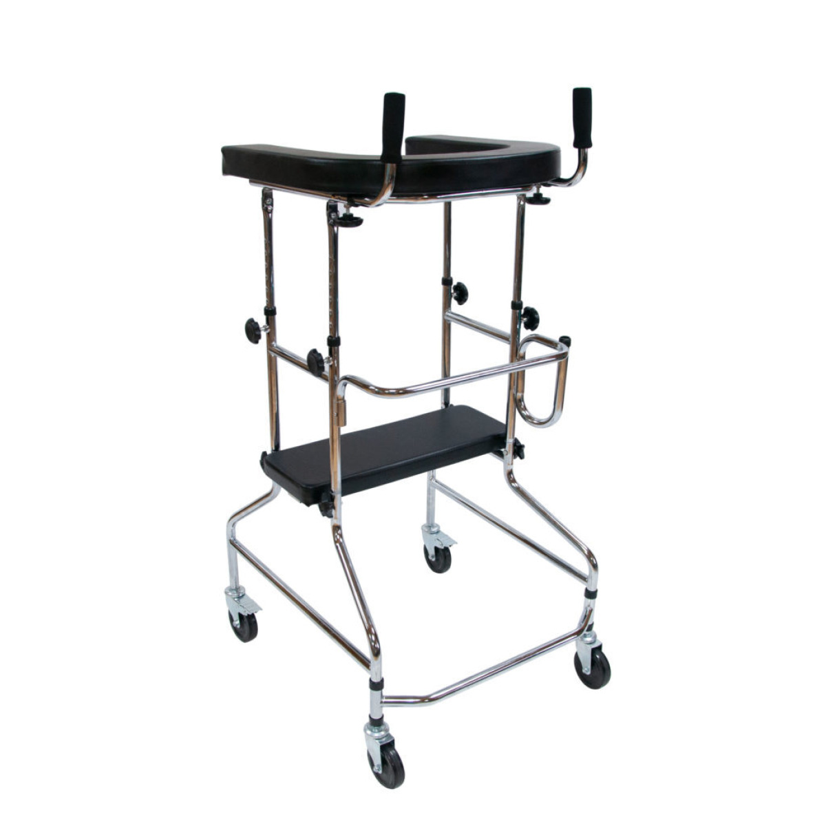 Ходунки предназначены для людей с инвалидностью, пожилых людей и больных, проходящих реабилитацию. Позволяют сохранять равновесие, улучшают координацию движений и уменьшают нагрузку на ноги. Модель оснащена U-образной подлокотной опорой, которая позволяет ставить на нее локти и предплечья, тем самым снимая нагрузку с мышц и суставов ног.