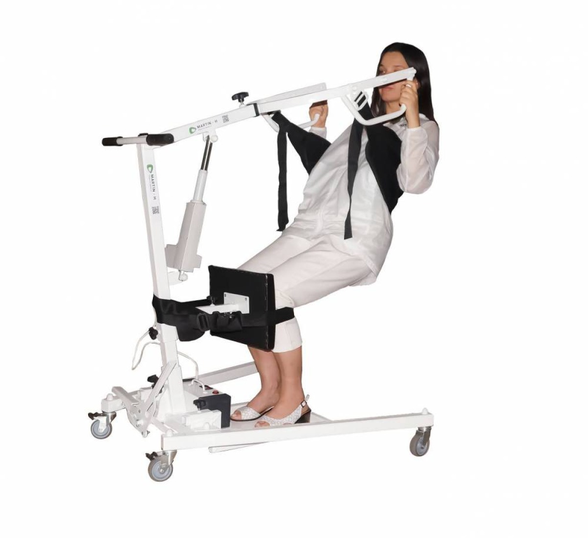 Устройство предназначено для приведения больного пациента из положения сидя в положении стоя и свободного перемещения его по ровной поверхности. Используется для пересаживания маломобильного человека с кресла-коляски на кровать или туалет. Кроме того, вертикальное положение пациента облегчает смену штанов и улучшает общее самочувствие.
