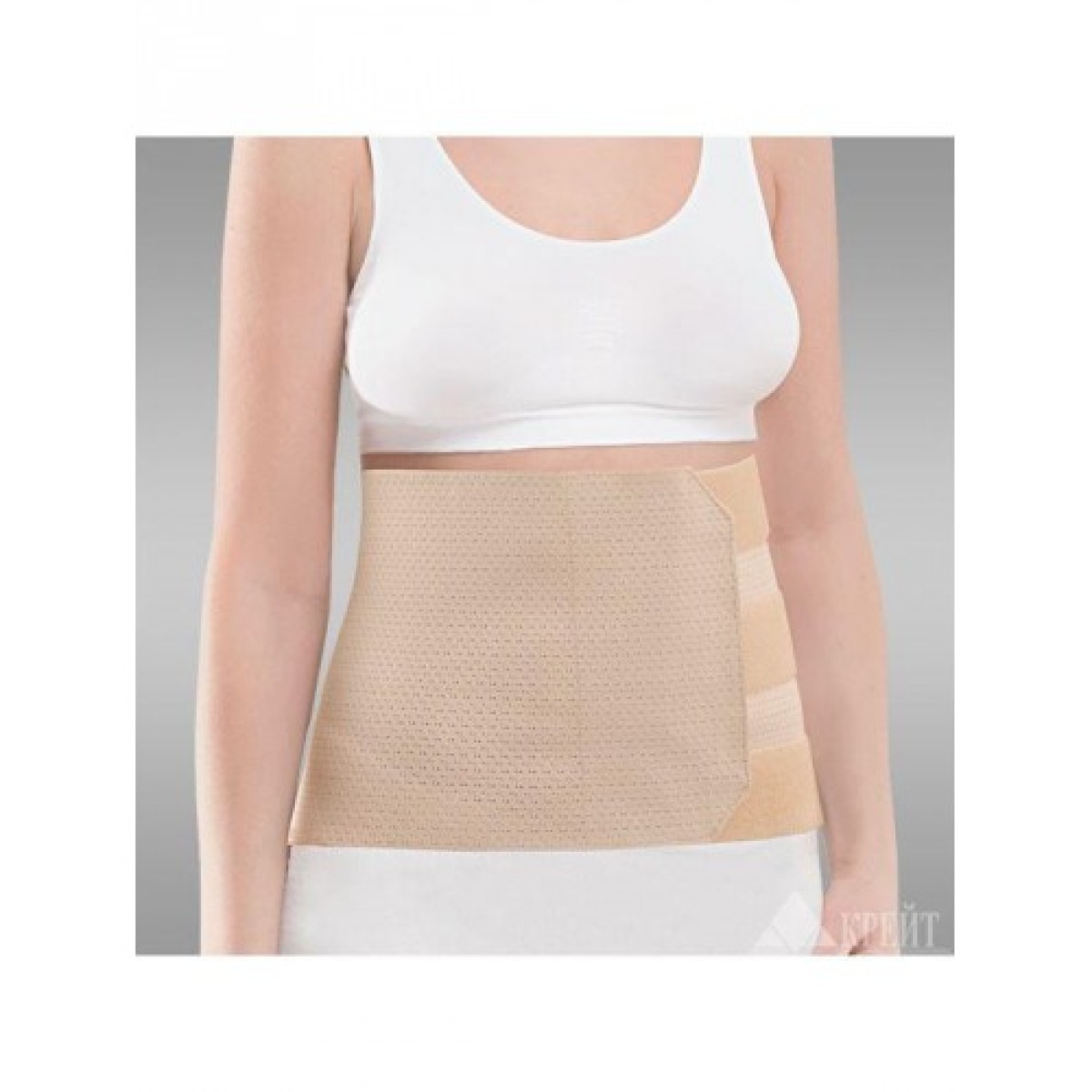 Обернуть бандаж вокруг тела и зафиксировать спереди с помощью застежки Velcro
