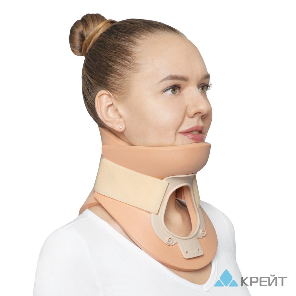 Ортез должен покоиться на ключицах и одновременно упираться в подбородок, если вы смотрите вперед