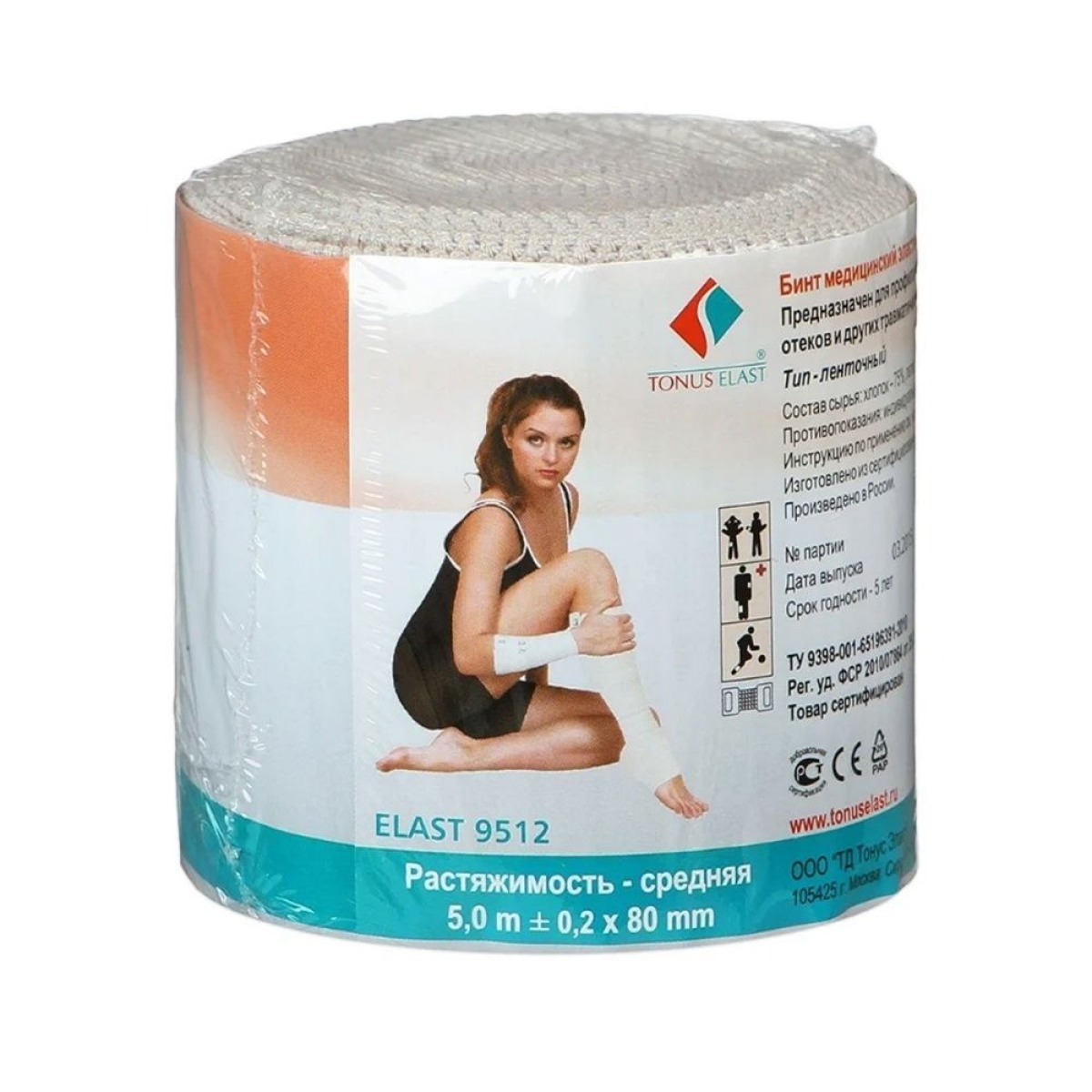 Бинт медиц. эластич. ленточный компрессионный средней растяжимости, ELAST 9512 С, 1,5м*0,08м
