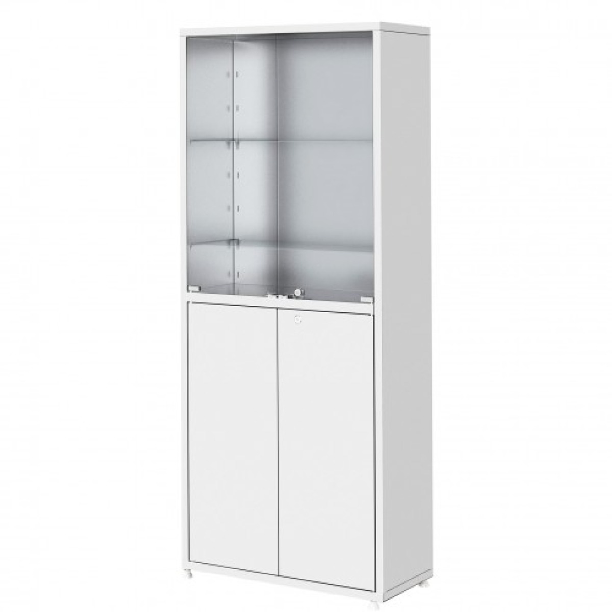 В нижней части: двухстворчатая запираемая металлическая дверца и две металлических полки