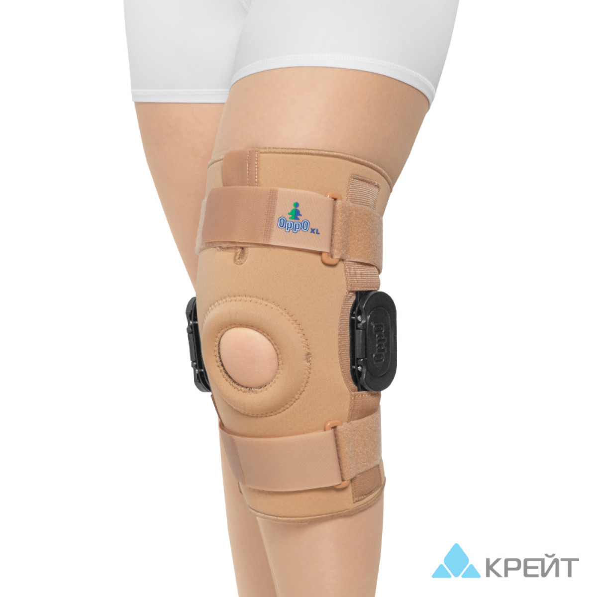 При правильном расположении ортеза на ноге надпателлярное отверстие должно находиться посередине коленной чашечки, а боковые шины строго по наружной и внутренней поверхностям коленного сустава