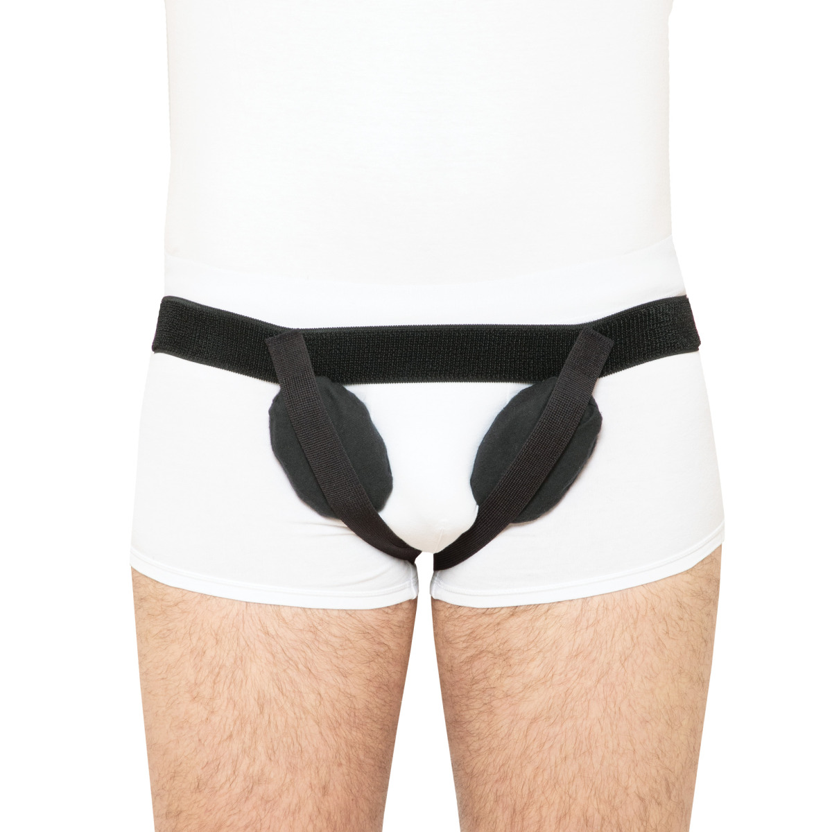 Препятствует увеличению и ущемлению грыжи, предупреждая выход органов живота через грыжевые ворота за счет компрессии области пахового и бедренного каналов