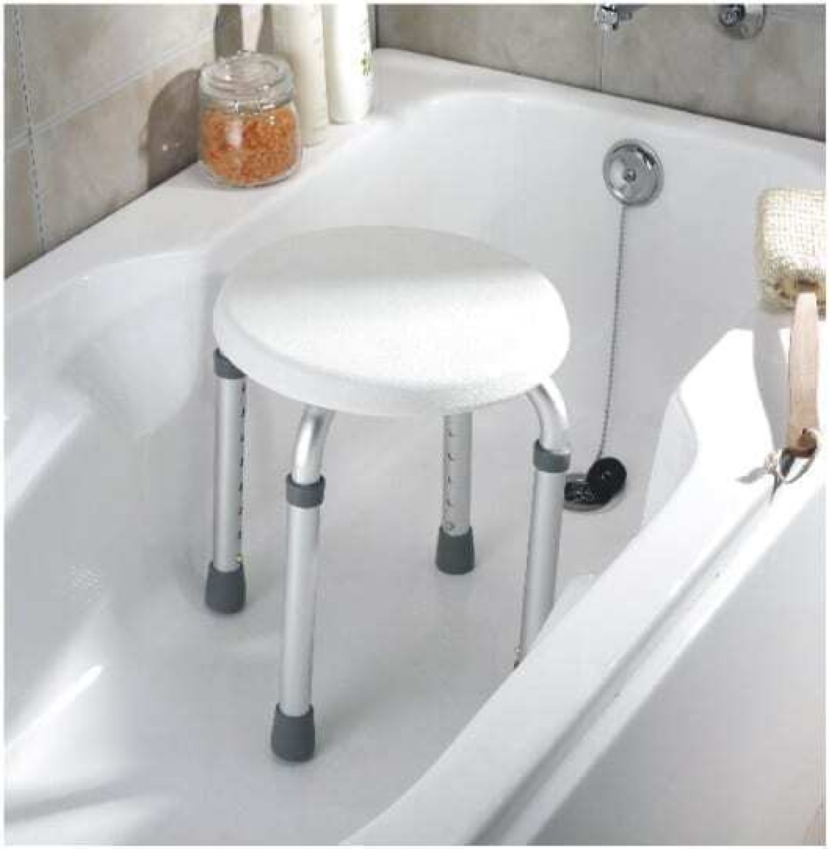 Стул для ванной комнаты используется при уходе за больными в лечебном стационаре или домашних условиях. Имеет 8 ступеней регулировки высоты с интервалом в 2,5 см. Легкая конструкция из анодированного алюминия не подвергается коррозии, сиденье выполнено из высокопрочного пластика. Стул устойчив и не скользит по полу благодаря резиновым наконечникам.