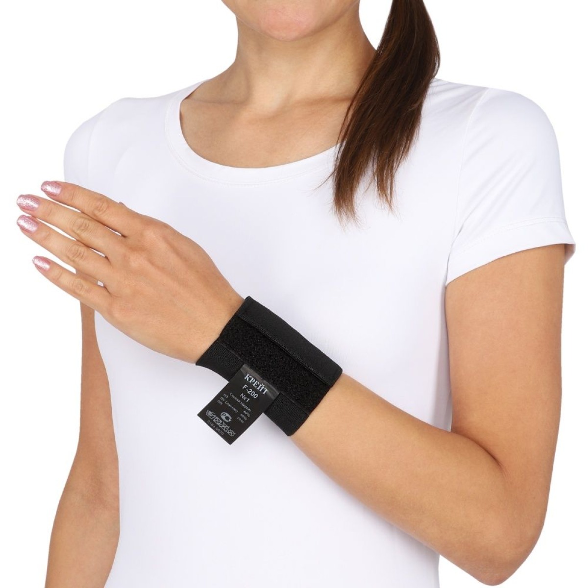 Наденьте на лучезапястный сустав, отрегулируйте степень компрессии при помощи застежки Velcro