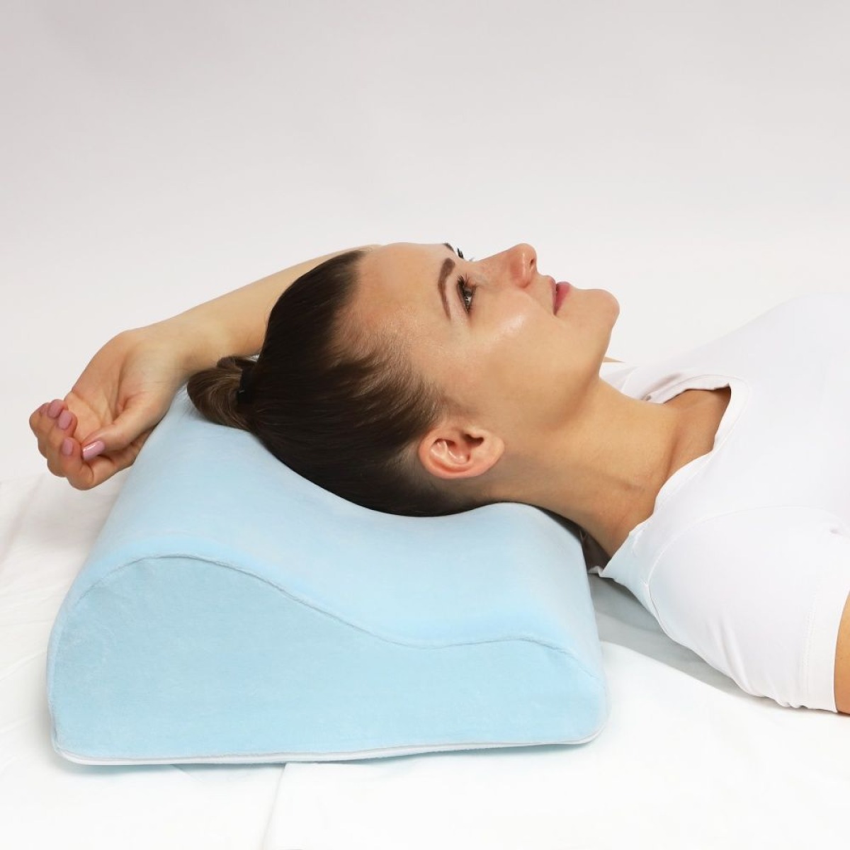 Подушка помогает плечам принять правильное положение и поддерживает естественный изгиб позвоночника