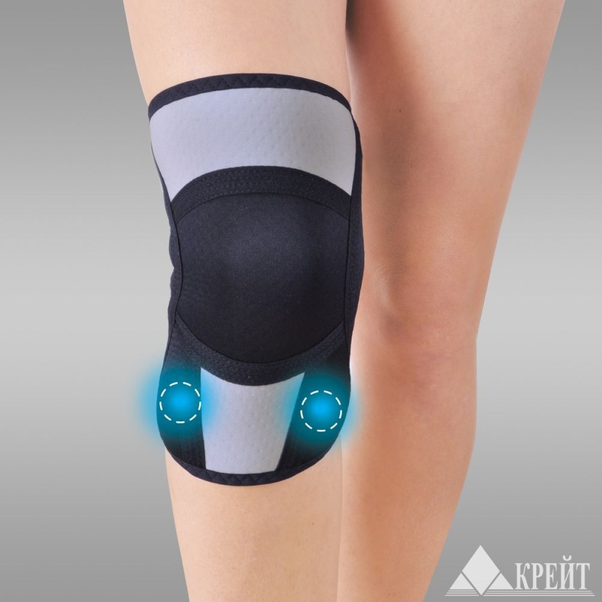 Бандаж для коленного сустава с аппликаторами биомагнитными медицинскими «Крейт» предназначен для оказания лечебного воздействия постоянным магнитным полем на области коленного сустава. Применяется в виде самостоятельного безлекарственного метода терапии в амбулаторных или домашних условиях, а также в сочетании с другими медикаментозными и физическими методами лечения. Совместно с магнитотерапией бандаж обладает стабилизирующим, компрессионным, согревающим и микромассажным эффектом.
