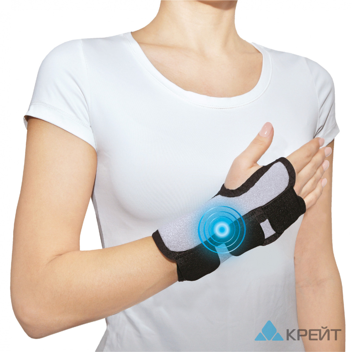 Бандаж для лучезапястного сустава с аппликатором биомагнитным медицинским «Крейт» предназначен для оказания лечебного воздействия постоянным магнитным полем на лучезапястный сустав. Применяется в виде самостоятельного безлекарственного метода терапии в амбулаторных или домашних условиях, а также в сочетании с другими медикаментозными и физическими методами лечения. Совместно с магнитотерапией бандаж защищает и поддерживает лучезапястный сустав, обладает компрессионным, согревающим и микромассажным эффектом.