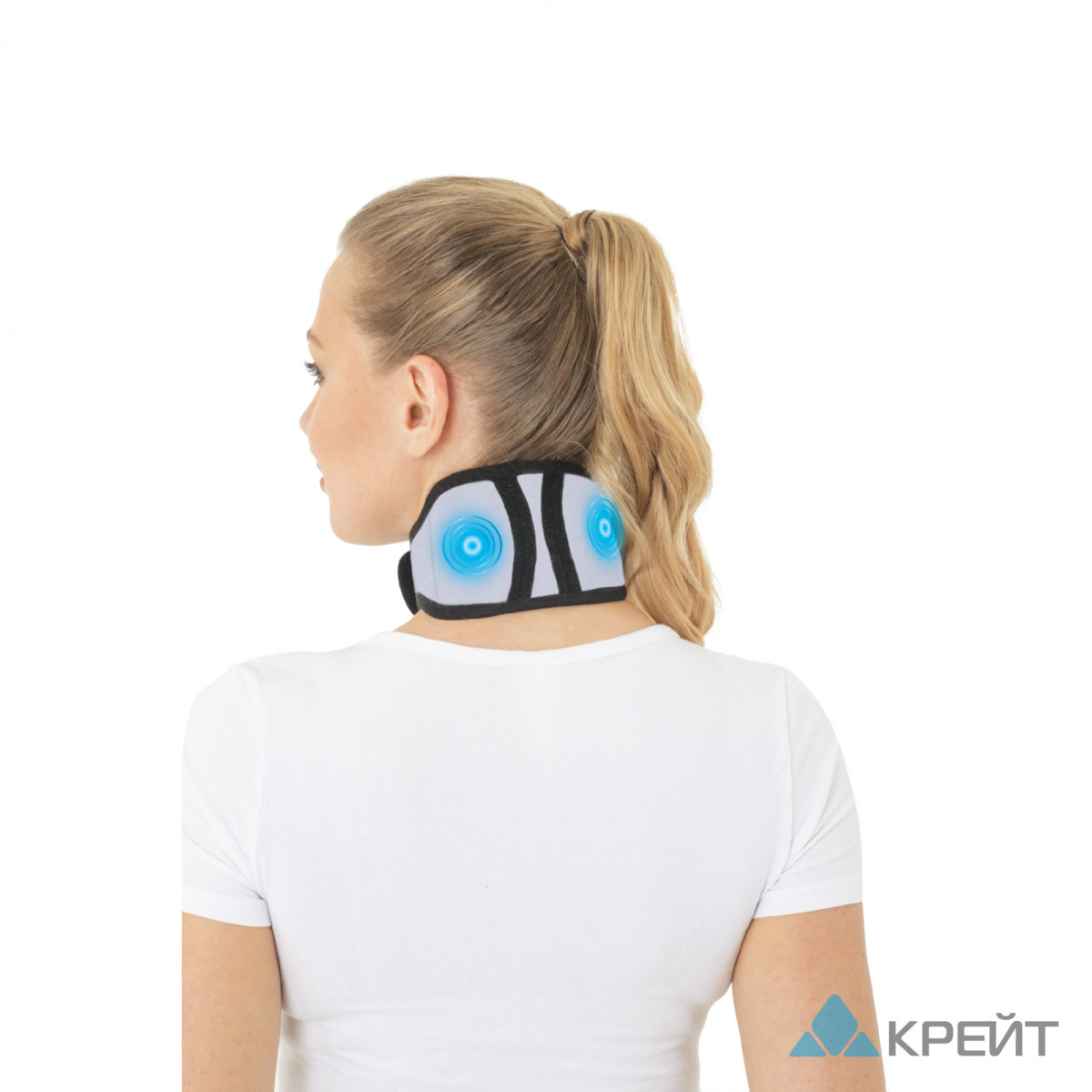 Бандаж для шейного отдела с аппликаторами биомагнитными медицинскими «Крейт» предназначен для оказания лечебного воздействия постоянным магнитным полем на область шеи. Применяется в виде самостоятельного безлекарственного метода терапии в амбулаторных или домашних условиях, а также в сочетании с другими медикаментозными и физическими методами лечения. Совместно с магнитотерапией бандаж обладает поддерживающим, согревающим и микромассажным эффектом.