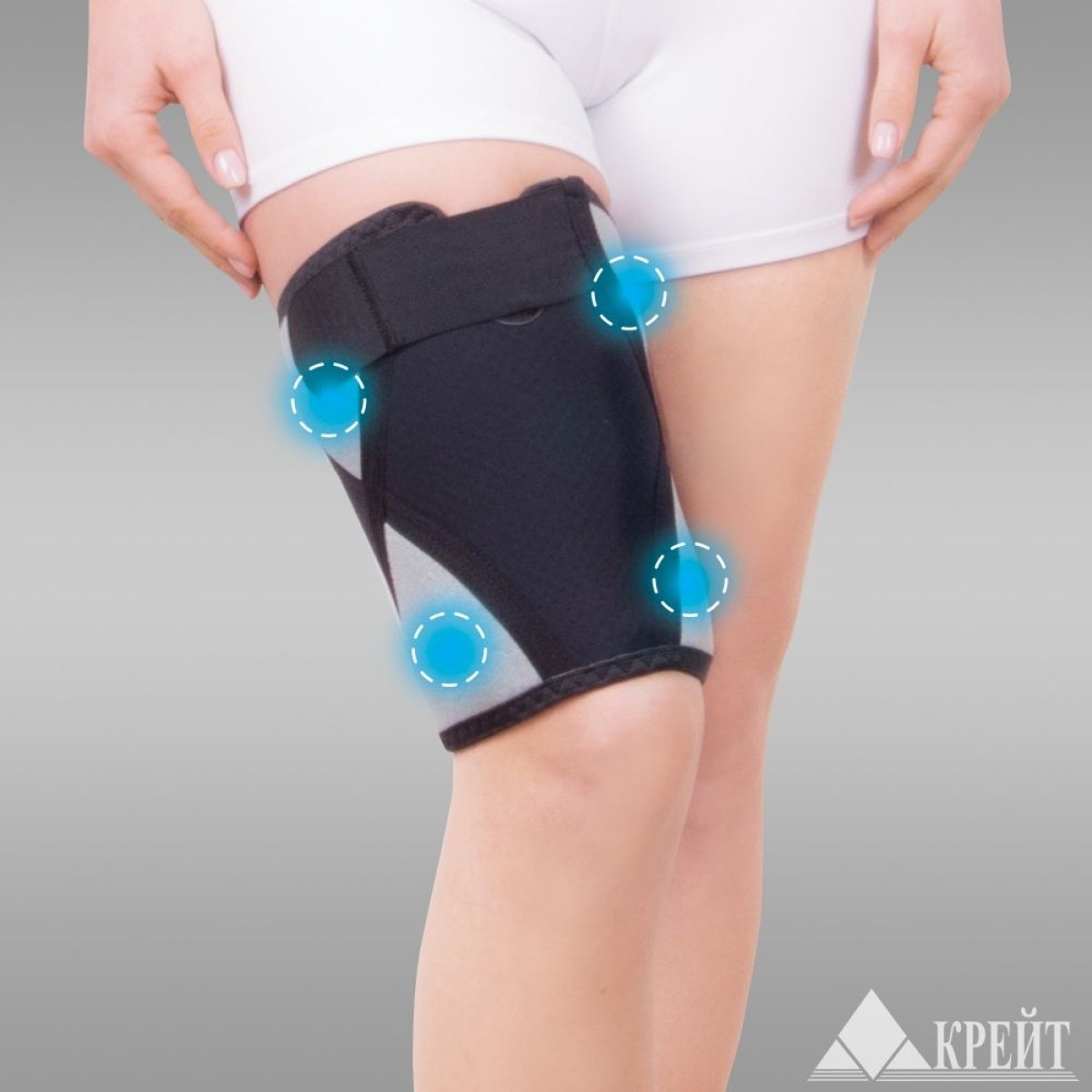 Бандаж для бедра с аппликаторами биомагнитными медицинскими «Крейт» предназначен для оказания лечебного воздействия постоянным магнитным полем на области бедра. Применяется в виде самостоятельного безлекарственного метода терапии в амбулаторных или домашних условиях, а также в сочетании с другими медикаментозными и физическими методами лечения. Совместно с магнитотерапией бандаж защищает мышцы бедра, обладает компрессионным, согревающим и микромассажным эффектом.