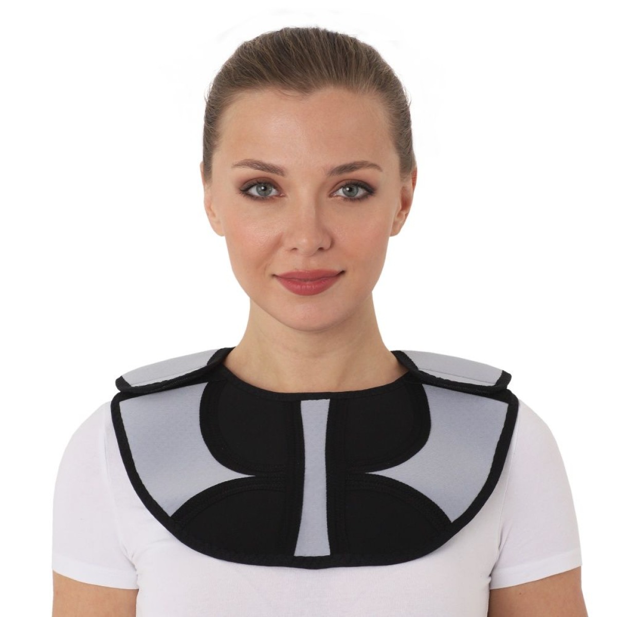 Бандаж для воротниковой зоны и грудного отдела выполнен из перфорированного неопрена
