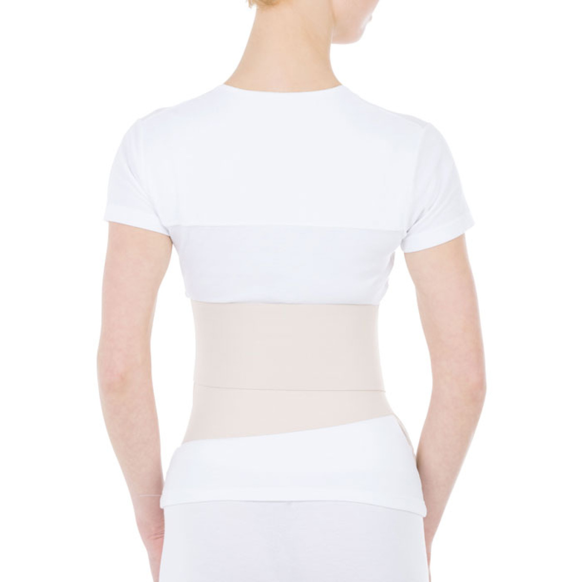 зафиксировать застежку бандажа в зависимости от места расположения послеоперационного шва