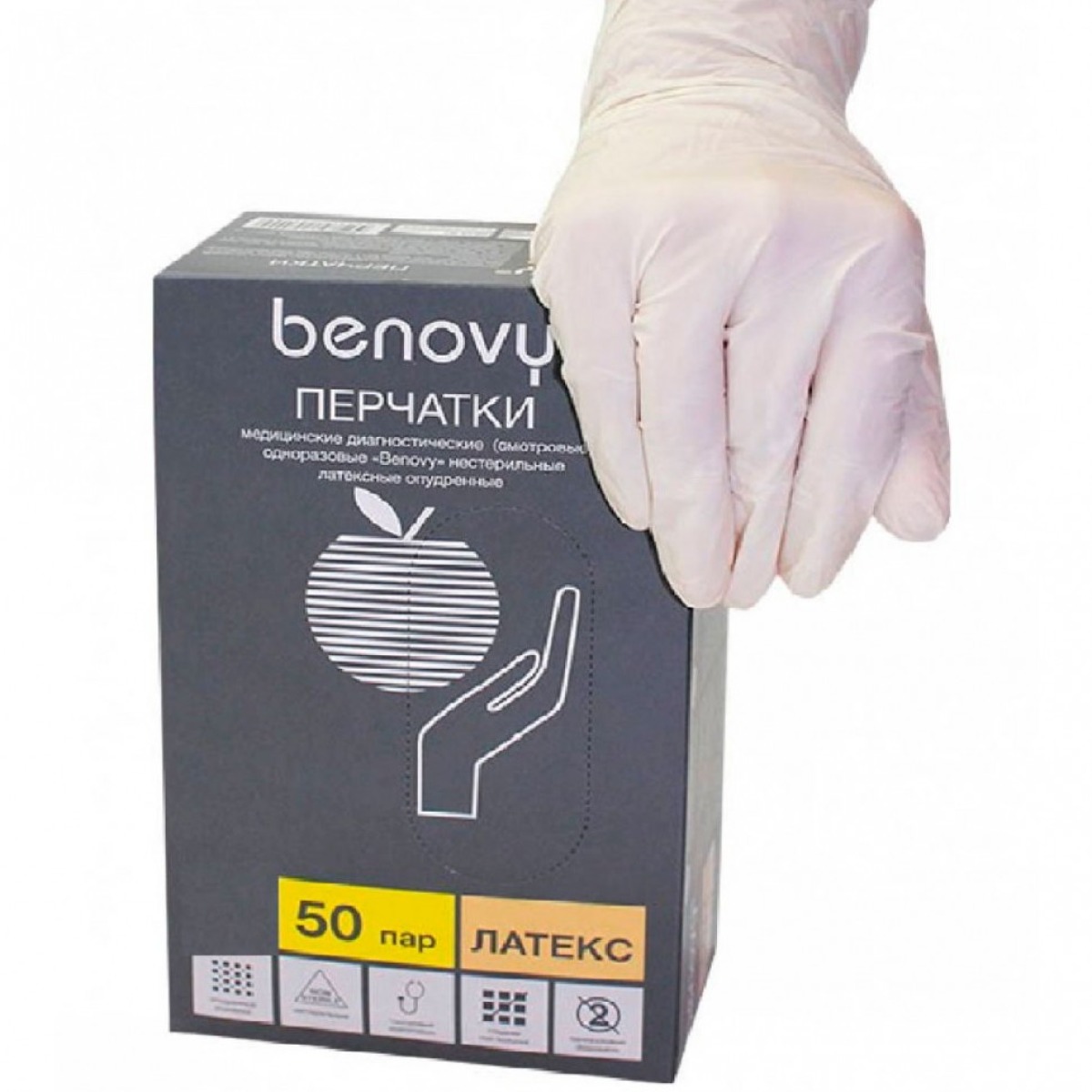 Перчатки медицинские диагностические (смотровые) одноразовые нестерильные "BENOVY" из натурального латекса текстурированные неопудренные с однократной хлоринацией натурального цвета предназначены для одноразового использования в качестве защитного барьера при ношении на руках медицинского работника во время осмотра/лечения пациента или для других санитарных целей, используются в основном как двусторонний барьер для защиты пациента и медперсонала от различных загрязнений.